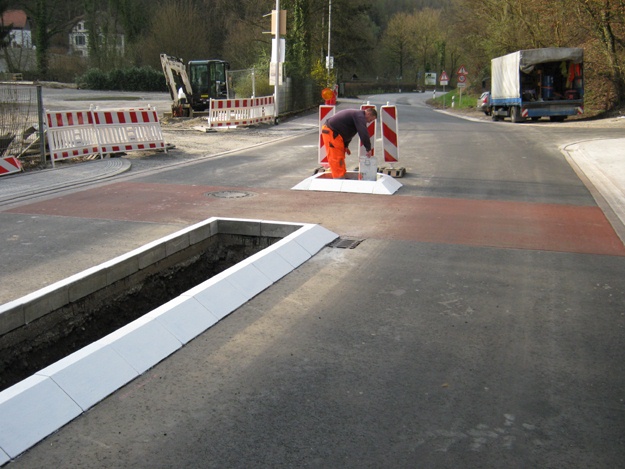 Klebebordsteine werden direkt auf die Fahrbahn geklebt und finden ihre Anwendung, wenn Änderungen in der Verkehrsführung notwendig sind. Die vorhandene Straßendecke wird nicht aufgebrochen! Typische Anwendungsbeispiele sind:
