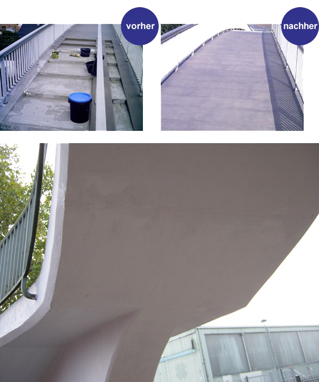 Wir sanieren Treppenanlagen, Bordsteine, Brücken, Beton- und Pflasterflächen mit wasserdampfdiffusionsoffenen Materialien, das heißt die Restfeuchtigkeit, die vom Erdreich kommt, kann entweichen.
